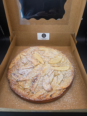 Our home-made apple tart in a gift box for the holidays. Freshly baked with walnuts, egg, flour, honey (no sugar added)